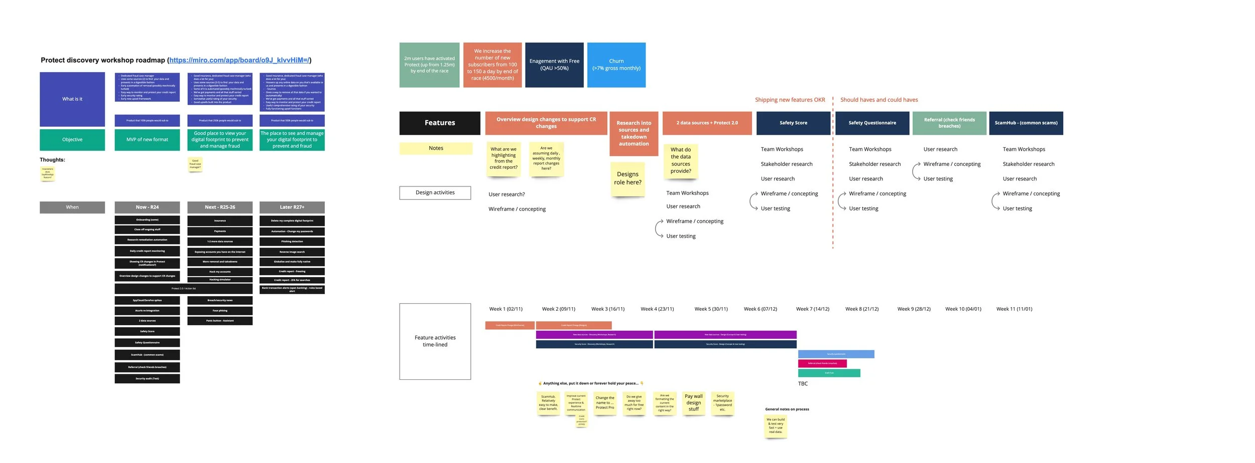 After a long bout of trying to grow an MVP with lean techniques, there was a need to research into the problem area deeply to better serve the user and meet business goals. This project dives into an active research period following through to ideation workshop days, which ended with a new set of planned user centred deliverables and a roadmap to prove that an identity monitoring based proposition could work as a subscription model.